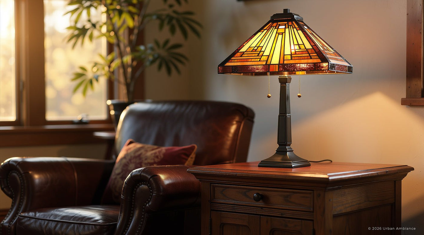 UQL7180 Waltham Tiffany Table Lamp with Craftsman Style, 23''H x 16''W, Vintage Bronze and Stained Glass